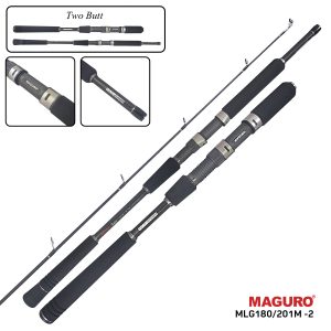 Joran Maguro Jaguar Keluaran Maguro ini cocok bagi pecinta casting untuk mancing saltwater. Dibuat dengan X-Power spiral carbon tape, dilengkapi dengan pemandu cincin Fuji dan reel seat Fuji. Kelebihan dari produk ini adalah satu joran dengan 2 pilihan ukuran yang bisa disesuaikan dengan kebutuhan atau lokasi mancing. Untuk mengganti panjang
