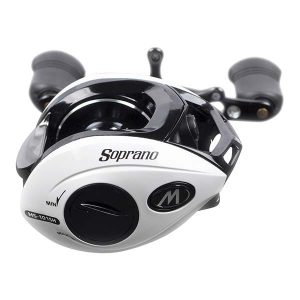 Reel Baitcasting Maguro Soprano 101SH Handle Kiri merupakan reel pancing berbahan berkualitas tinggi yang didesain menarik dan cocok digunakan untuk memancing casting di air tawar sungai/rawa. Reel ini harus dipasangkan dengan joran model bait casting. Dirancang dengan gear ratio 6.2:1 serta 4 stainless steel ball bearings + 1 one-way clutch