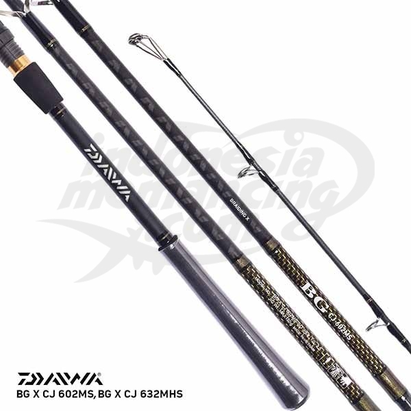 Joran Daiwa BG X CJ di desain dengan perpaduan warna membuat joran ini sangat elegan, terbuat dari bahan graphite blank performa tinggi. Di pacu dengan Fuji reel seat dengan mur pengunci, dilengkapi oleh ring guide Fuji “O” dan Pegangan EVA Split kustom. Joran ini cocok digunakan untuk teknik jigging. Bisa untuk memancing di sungai, danau maupun laut.