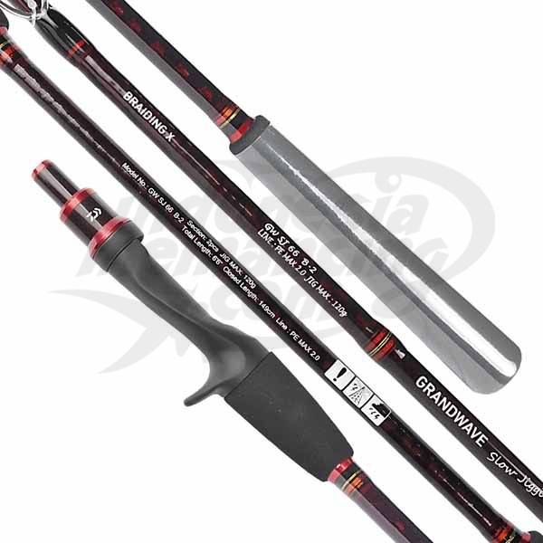 Joran Slow jigging dari daiwa yaitu Daiwa Grandwave SJ yang terbuat dari bahan karbon fiber braiding X. Dilengkapi dengan ring guide Fuji Alconite K yang sudah tidak diragukan lagi kekuatannya dan pada bagian grips EVA ultra tough.