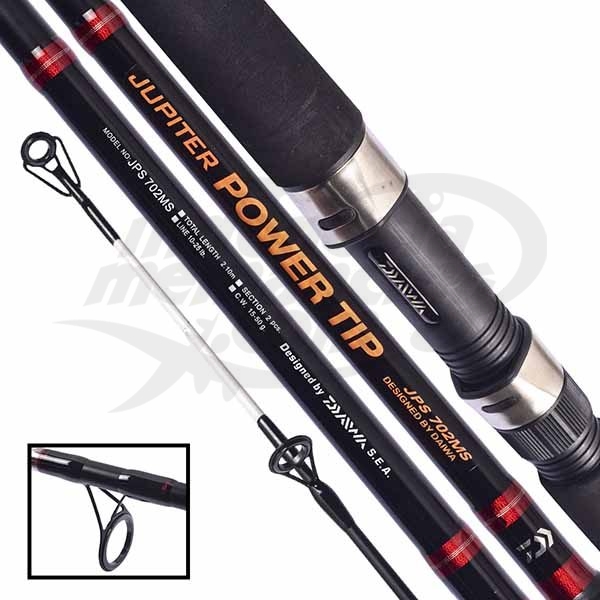 Joran Daiwa Jupiter Power Tip 2017 terbuat dari bahan komposit fiber Blank dengan ring guide aluminum Oxsida memberikan kehalusan gips, tahan patah dan tahan kepang. Pada bagian reel set menggunakan desain dari Daiwa S.E.A. Joran ini cocok digunakan di air tawar maupun air asin.