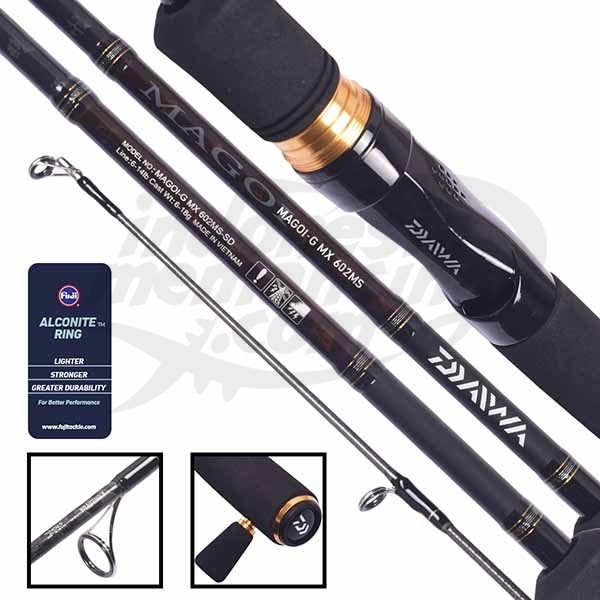 Joran Daiwa Magoi-G MX menggunakan material carbon fiber blank dengan HVF dan konstruksi graphite bias 45 derajat mencegah memutar blanko untuk kekuatan, kepekaan yang lebih besar dan kekuatan pengaturan kait. V-Joint memungkinkan ferrule batang untuk melenturkan dengan batang dan menghilangkan yang weak spoots. Dilengkapi Full ring guide Fuji Alconite. Grip EVA Retainer dan pada bagian Butt dilindungi dengan karet butt.