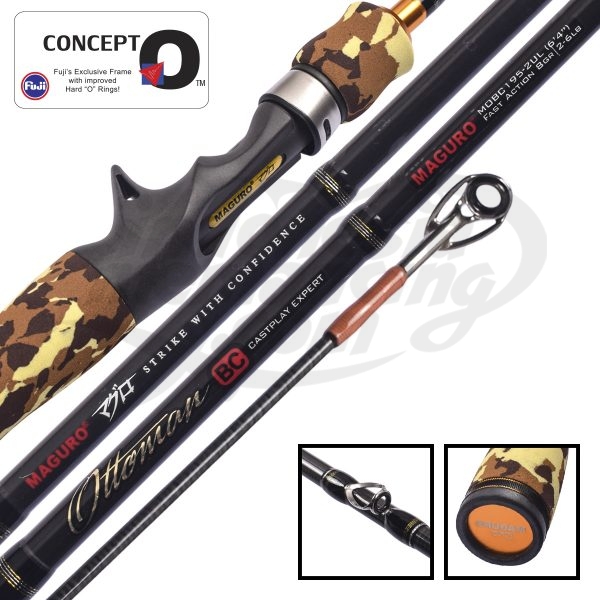 Joran Maguro Ottoman BC MOBC keluaran terbaru dari Maguro Ottoman dengan desain warna army. Dibuat dari bahan carbon yang menggunakan teknologi X-Power spiral carbon tape. Dilengkapi dengan pemandu cincin Fuji “O” dan reel seat Fuji ACS trigger. Pada bagian grip EVA bergaya split army, akan menambah kenyamanan saat memancing.