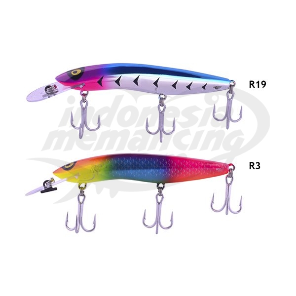 Umpan Halco ini terbuat dari bahan resin, digunakan untuk mancing tehnik popping, dengan target ikan seperti Trevally, Salmon, dan lain nya. Panjang umpan: 125mm Dives/kedalaman: 3 meter