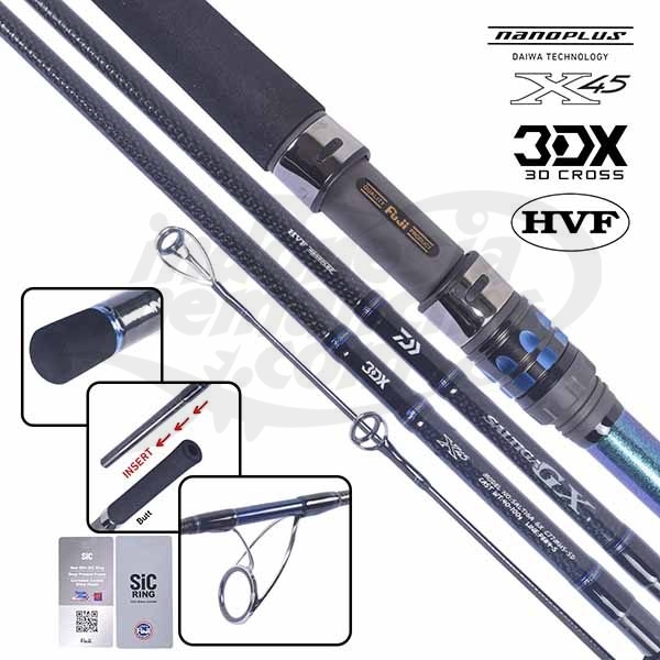 Joran Daiwa Saltiga GX 2020 merupakan joran yang menggunakan 3DX karbon fiber dan glass fiber dalam pembuatannya, sehingga membuat action joran ini sangat bagus dan lebih kuat. Dengan konstruksi graphite bias 45 derajat mencegah memutar blanko untuk kekuatan, kepekaan yang lebih besar dan kekuatan pengaturan kait. Dipacu dengan reel seat dari daiwa serta dilengkapi oleh ring guide Fuji SIC membuat line lebih keluar dengan lancar.